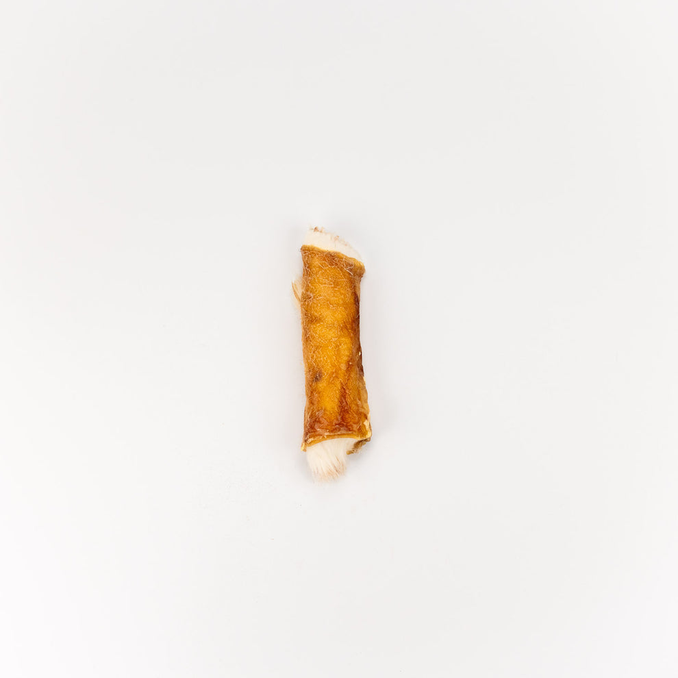 Hand-made roll of dehydrated rabbit hide. Single-ingredient dehydrated rabbit. No added hormones No antibiotics Sizes: Small 4"-5" * Large 8"-10" * XL 10"-12"