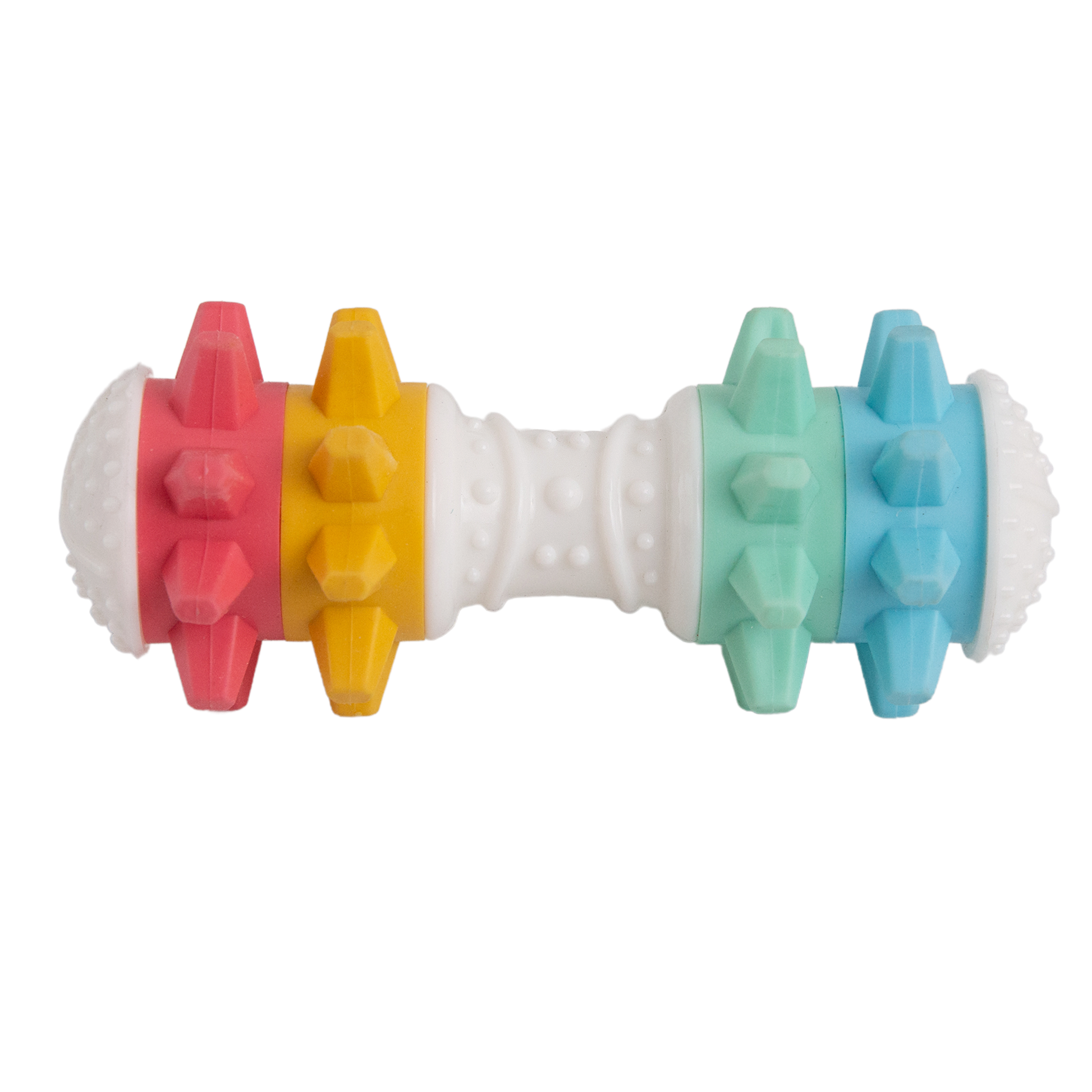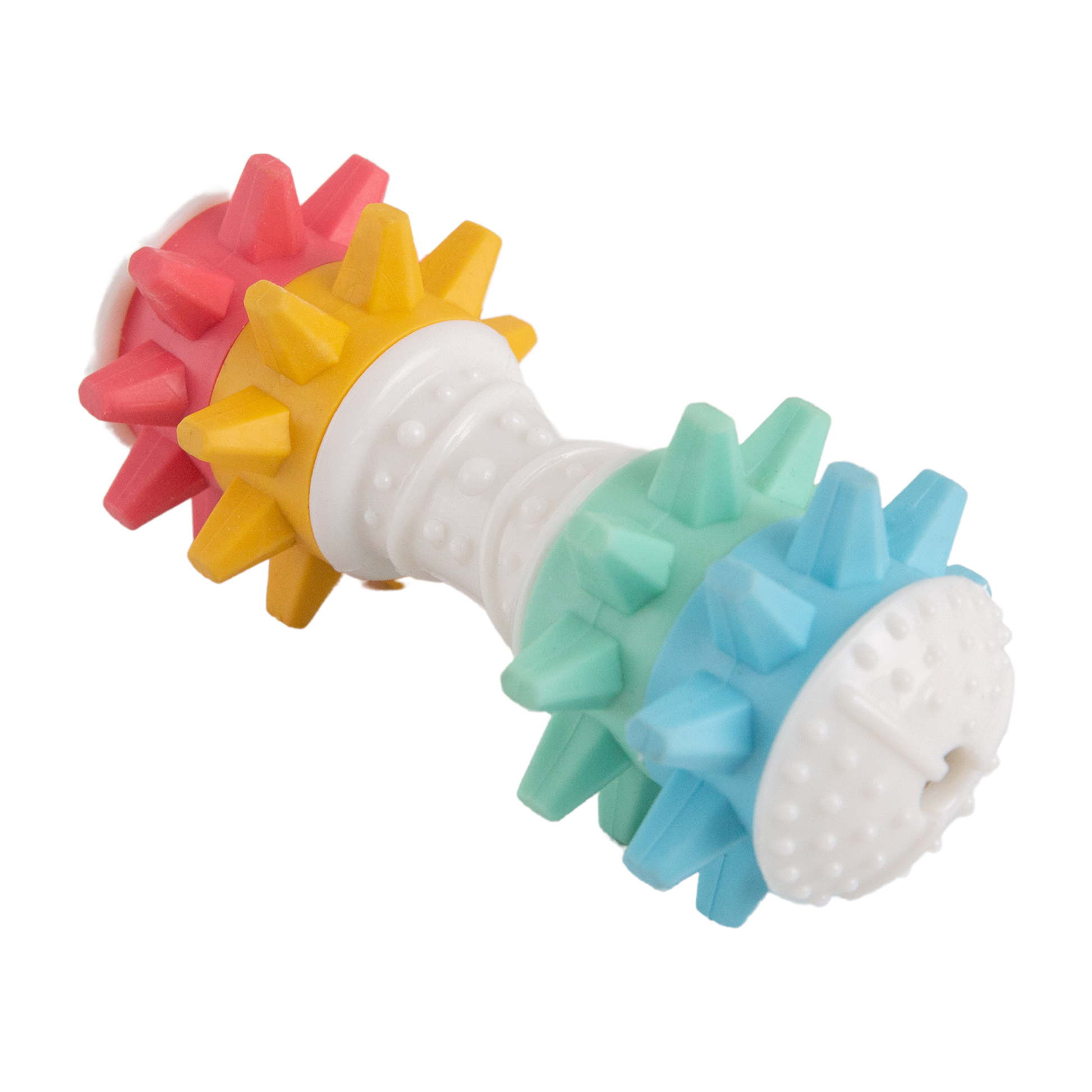 Introducing our newest Nylon Bone Dog Toy, Shake It Off! This unique toy is designed to last with an eco-friendly and extra durable construction that mimics traditional vintage toys. When shaken your pup will get a treat - the nubby chewable texture, vibrant spiky colors that twist,