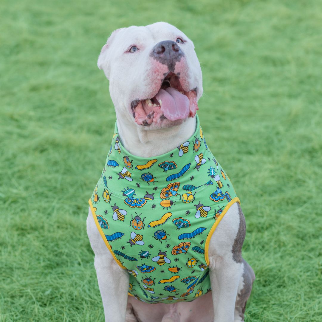 These summer tanks are sure to impress at your block parties, pool parties, and pittie parties! Keep your pittie festive this summer and show everyone his or her soft side! Details: * Stretchy, lightweight material * Neck can be worn high or folded over * High cut tummy for potty time Care Instructions: * Machine wash on cold. * Let air dry or tumble dry on low.