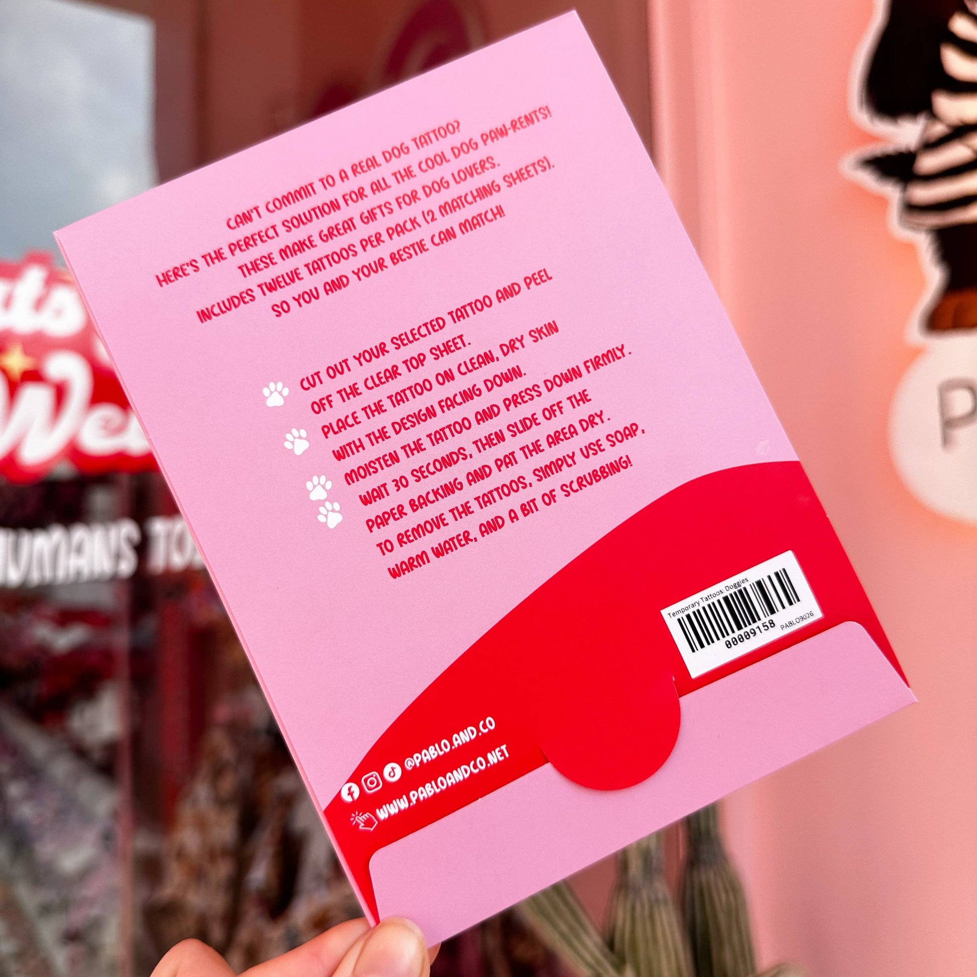 Can't commit to a real dog tattoo? Here's the perfect solution for all the cool dog paw-rents! Includes twelve tattoo's per pack (2 matching sheets) So you and your bestie can match!