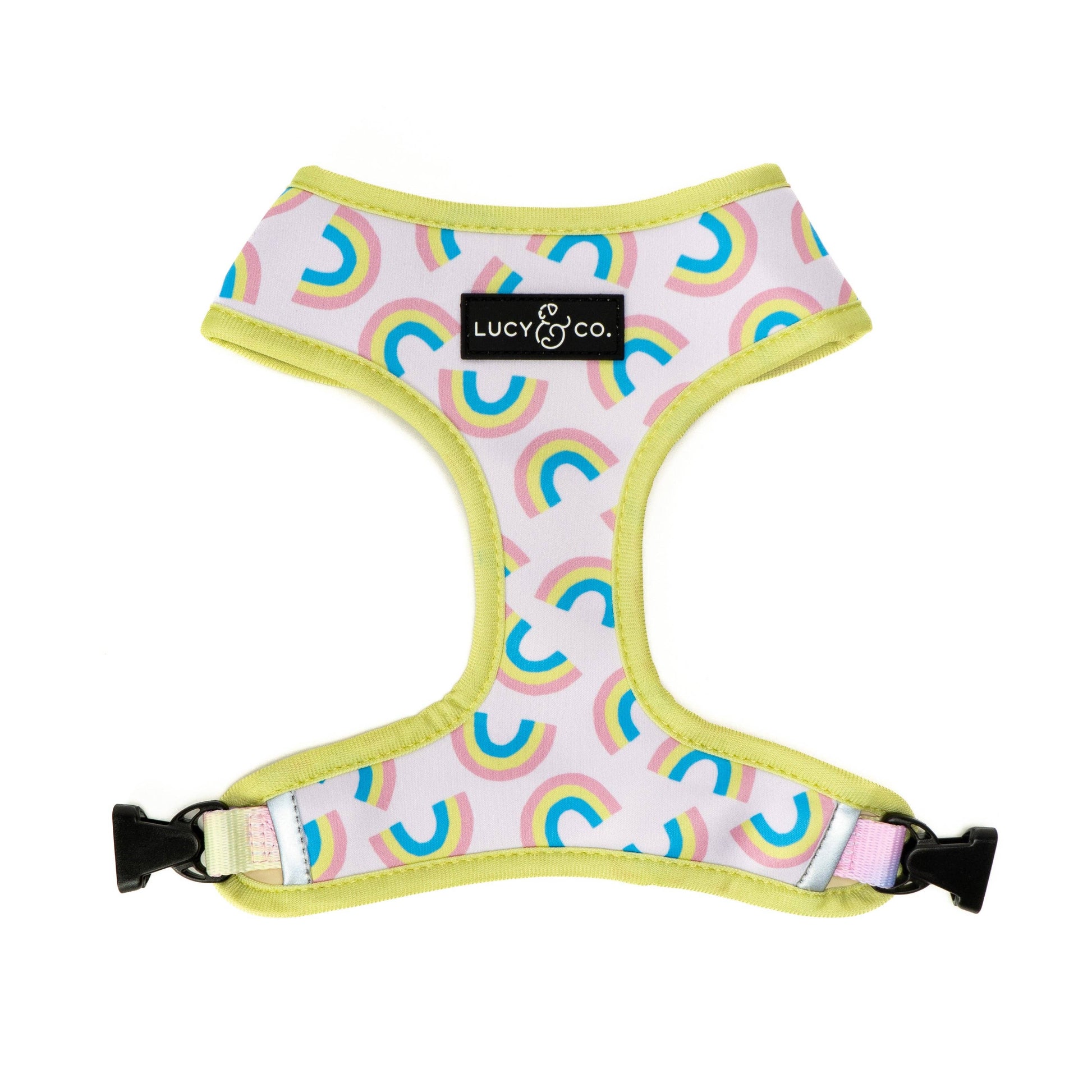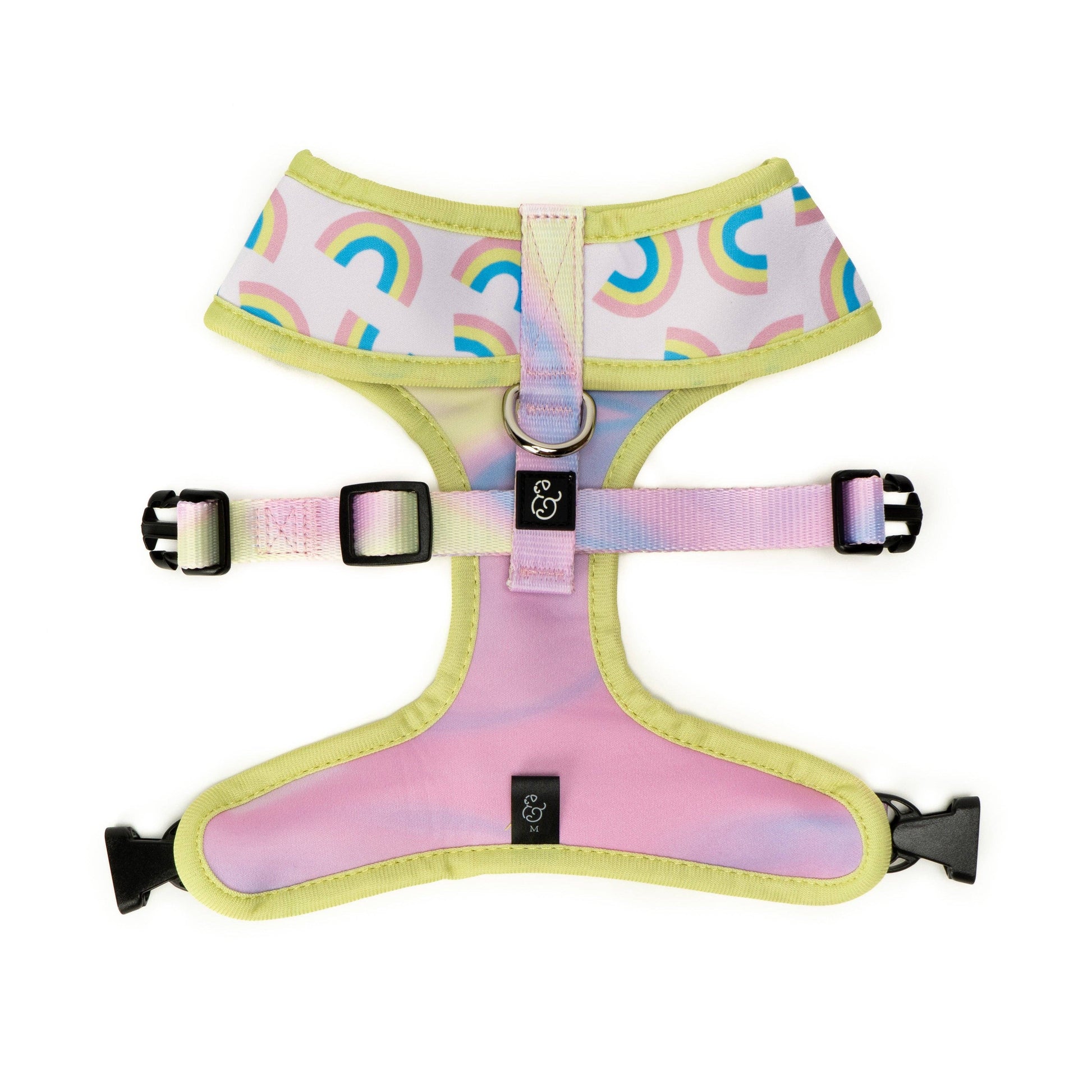 The pot of gold at the end of our rainbow! Our Making Rainbows Reversible Harness not only looks great, but it feels great too! Made with water-repellant neoprene, this harness features two prints in one, a super sweet rainbow pattern and a pretty purple gradient! It's easy to swap to the other side for a brand new look! Explore our reversible harnesses for an easy-care for fit that moves with all of your pups natural wiggles and shakes.