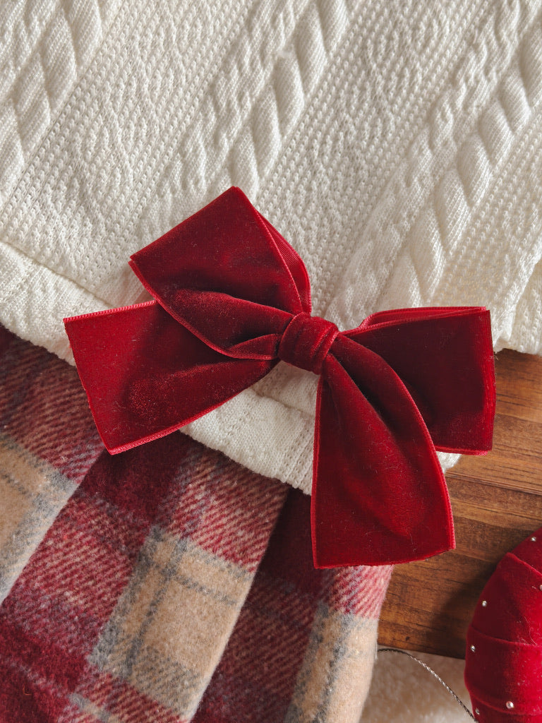 This holiday dress blends plush winter knit with a festive flannel skirt, the perfect combo for a cozy, Christmas‑ready look. Soft, warm, and comfy for all‑day wear, it’s ideal for holiday photos, gift‑opening mornings, or chilly winter strolls. The layered textures give it that classic Christmas feel every pup needs in their winter wardrobe! Beathable fabric for comfort. Designed for small to large dogs. Wash with gen